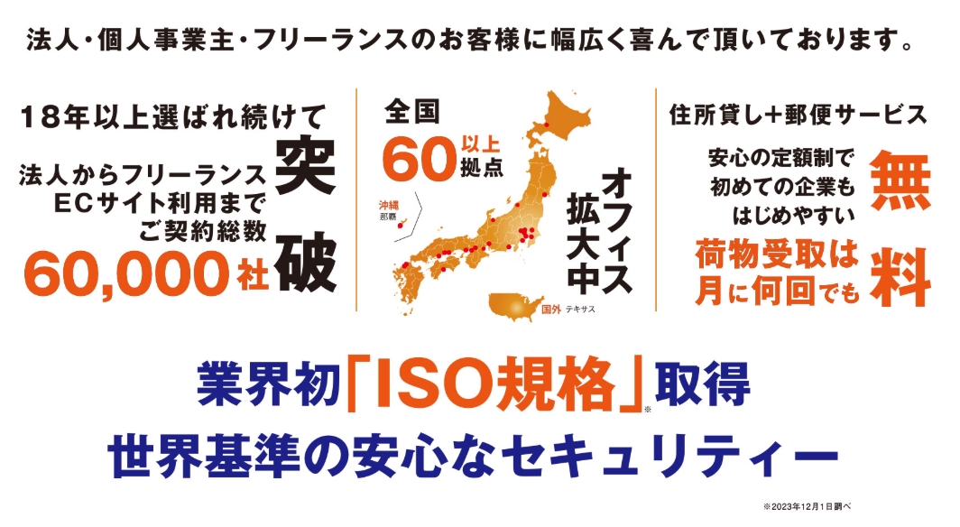 月額数千円で、自宅住所を公開せずに法人登記・ビジネス住所・郵便物管理ができるのは、まさにコスパ最強。