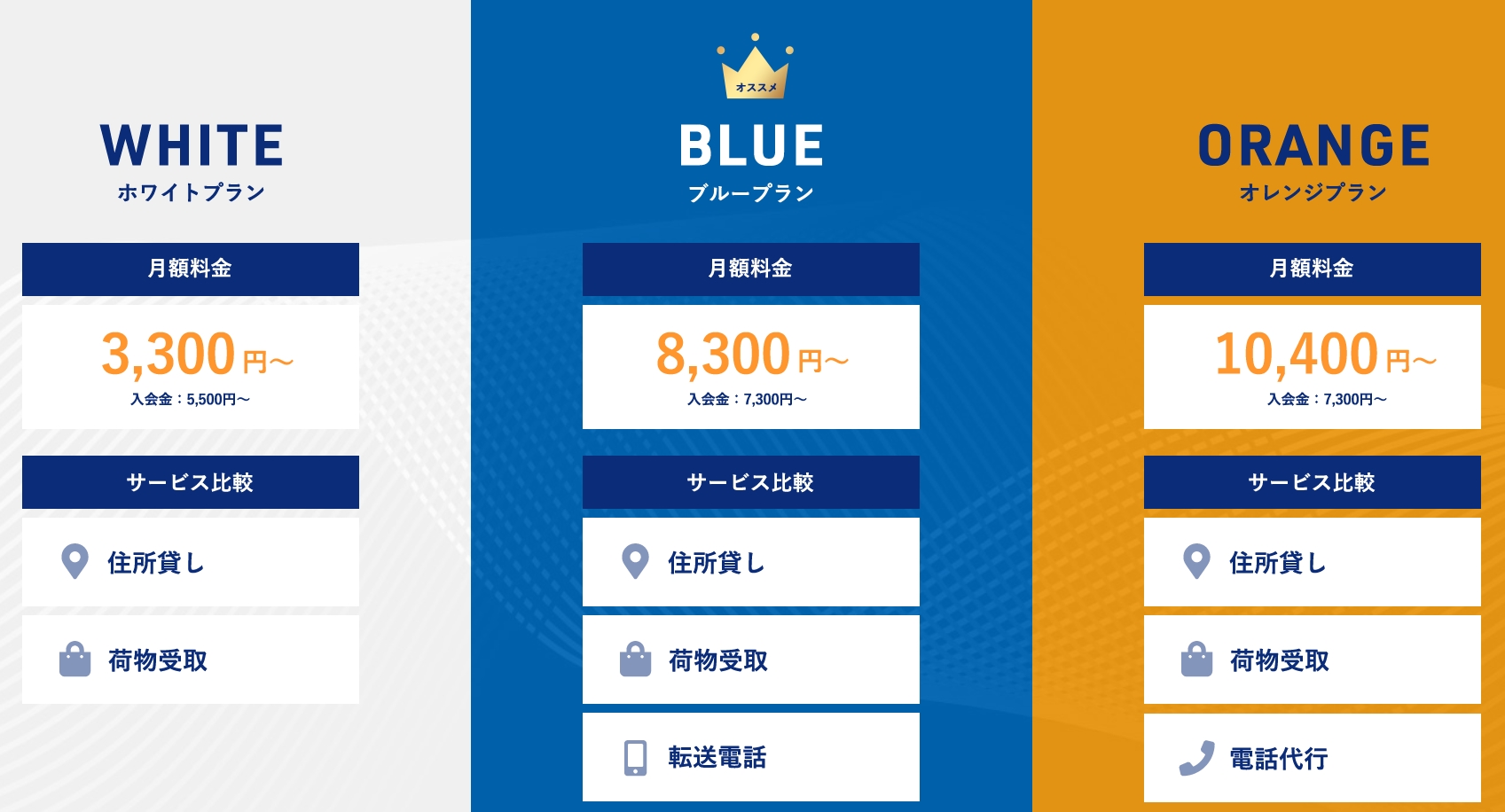 受取・転送の有無、転送頻度、転送先の設定自由度など、業務上重要な書類が届く方には要確認。